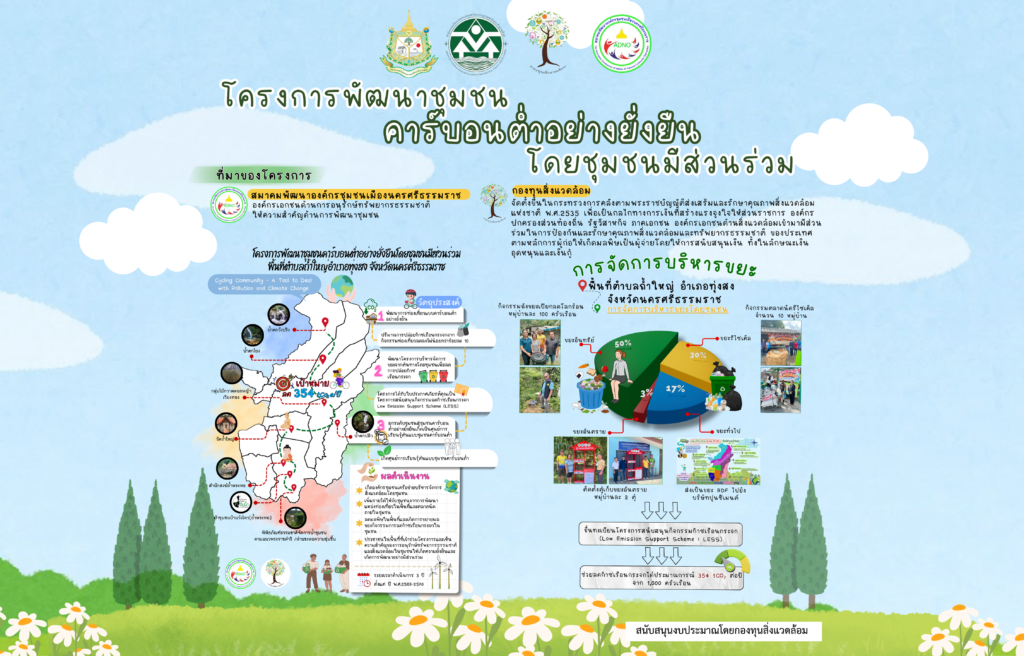 โครงการพัฒนาชุมชนคาร์บอนต่ำอย่างยั่งยืนโดยชุมชนมีส่วนร่วม พื้นที่ตำบลถ้ำใหญ่ อำเภอทุ่งสง จังหวัดนครศรีธรรมราช ได้จัดตั้งศูนย์เรียนรู้เพื่อสร้างความตระหนักให้กับชุมชน